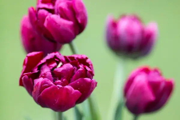 O lalei dublu uimitoare, strălucitoare roz, cu flori satinate, asemănătoare bujorului.